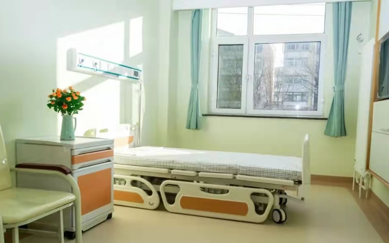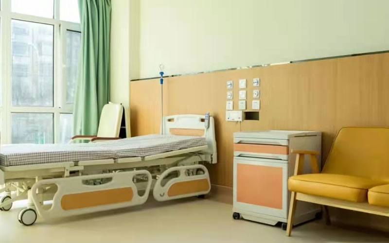 獨立普通單間床頭安裝兩米的醫(yī)用設備帶,配有氧氣終端、吸引終端、呼叫器和配電照明設備。