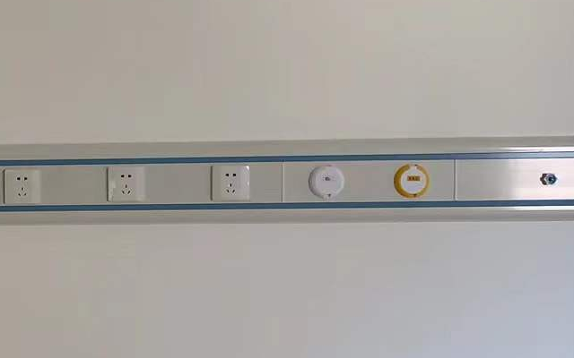 第三步:在墻上固定醫(yī)用設(shè)備帶、安裝氧氣、負(fù)壓吸引等各種氣體終端、呼叫器分機(jī)、床頭燈和開關(guān)插座等病房床頭設(shè)備。