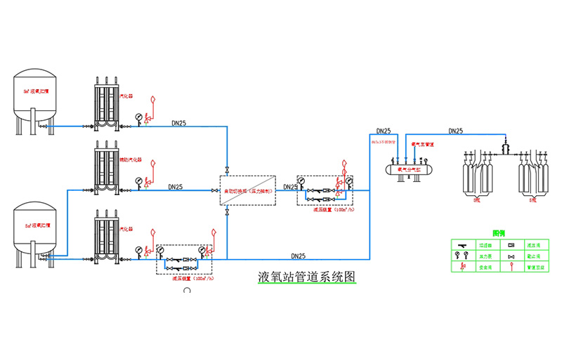 中心液氧站是液氧系統(tǒng)的核心,液氧系統(tǒng)主要由中心液氧站、汽化器、減壓、過濾、切換裝置等組成。